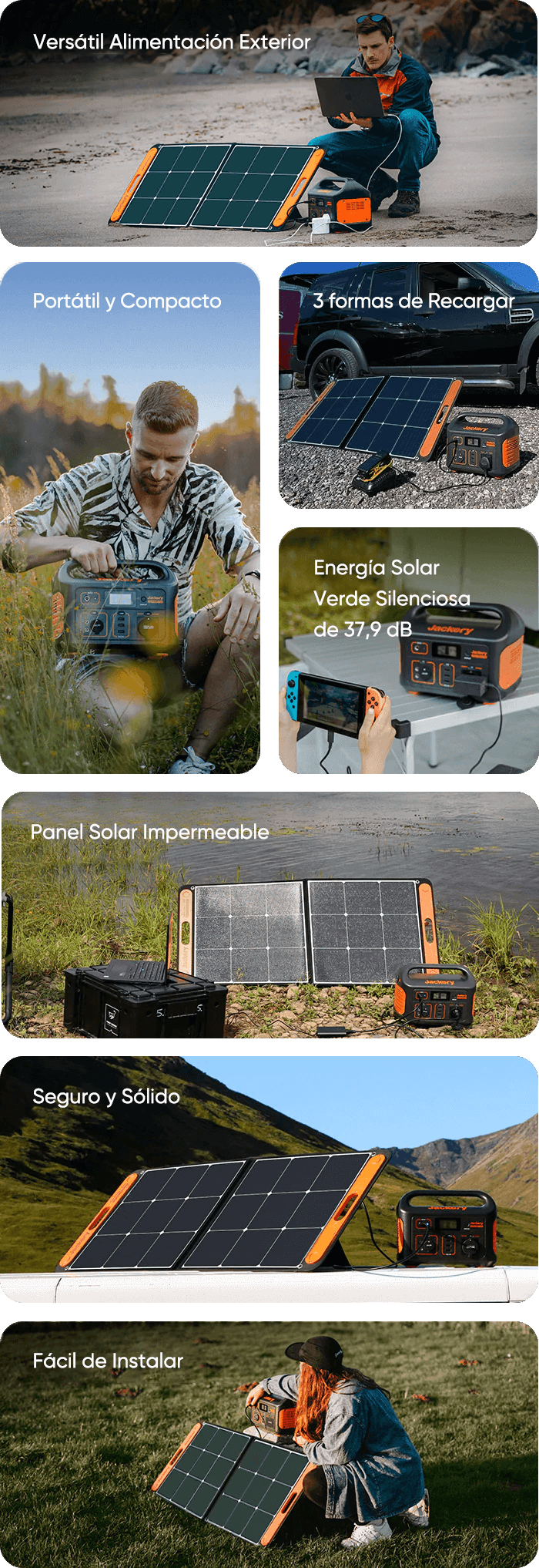 Con sus tres puertos USB, una salida de CA, y una salida de auto de 12 V, el Generador Solar 500 de Jackery convierte la energía solar para suministrar una energía de ONDA SINUSOIDAL PURA estable a tus dispositivos y electrodomésticos pequeños, como lámparas, laptops, teléfonos, refrigeradores pequeños, máquinas CPAP, y otros dispositivos.